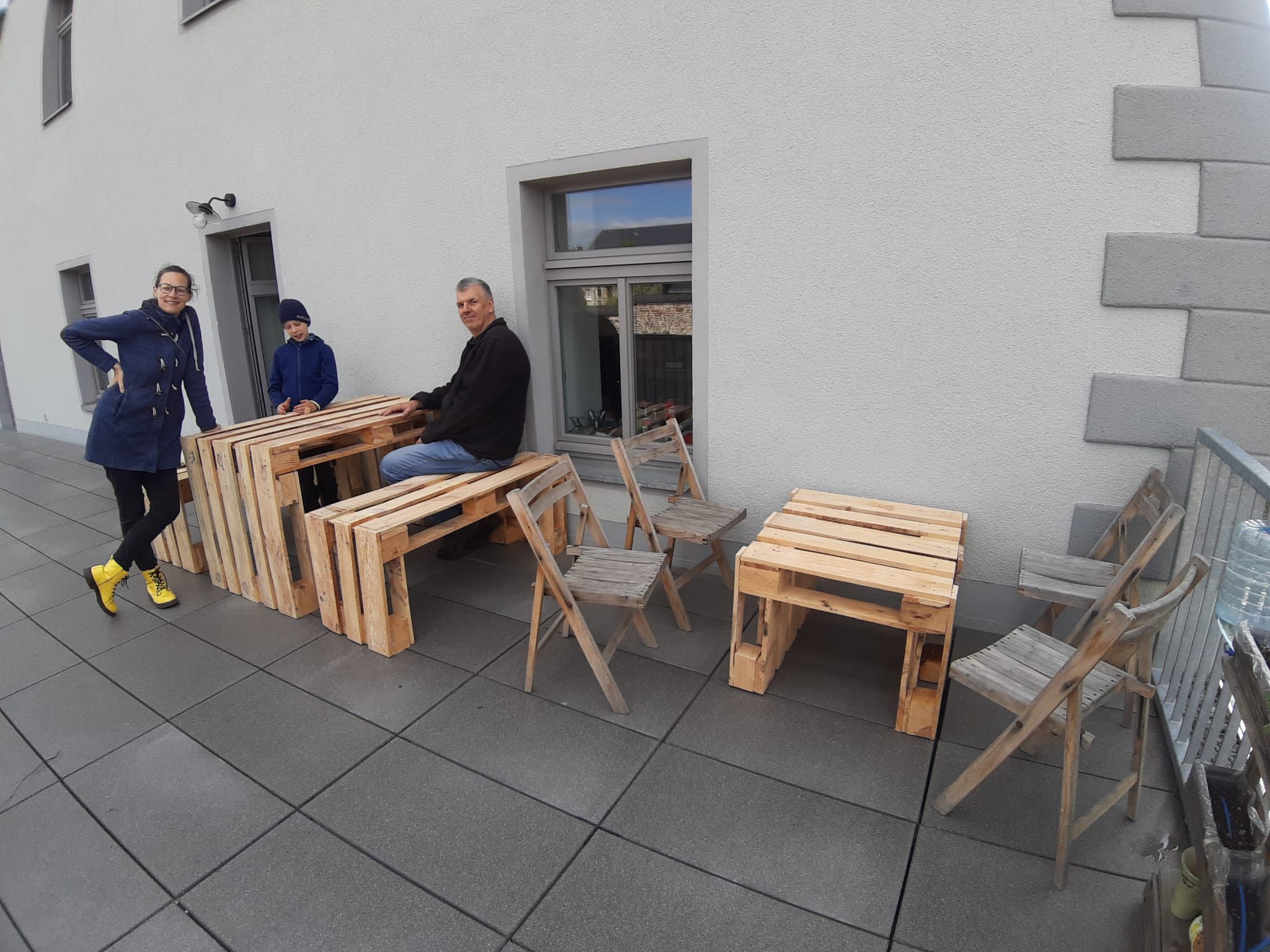 Das sind unsere neuen Terrassenmöbel aus Paletten!! Und bald kommen noch unsere selbstgenähten, unglaublich bequemen Kissen.
