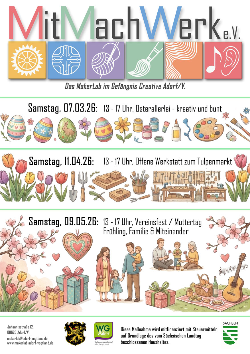 Jeden Donnerstag von 15-18 Uhr im "Gefängnis Creative" (Fronfeste), Johannisstrasse 12, 08626 Adorf/Vogtl.